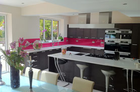 Glass splashbacks add a truly stylish look to your kitchen, using glass in your kitchen also brings the added benefit of reflected light so spaces seem brighter and larger. Glass splashbacks are also very easy to keep clean and are extremely hygenic.